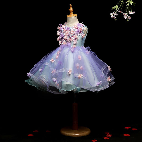 - Beautiful blue pastel-colored dress with pink and blue delicate floral beading and details.