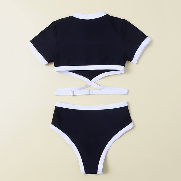 • Black sporty two piece with white outline.
