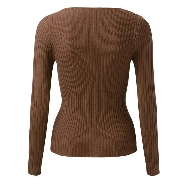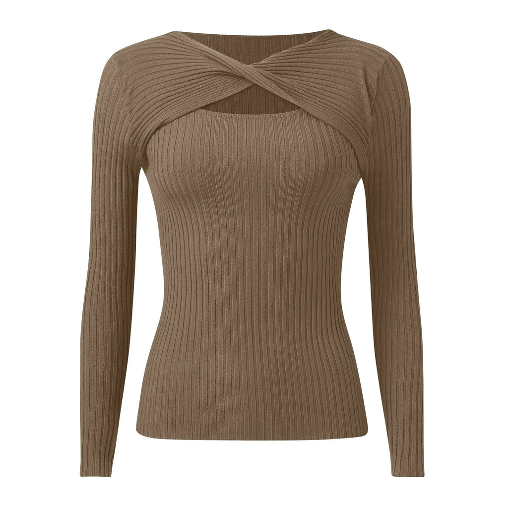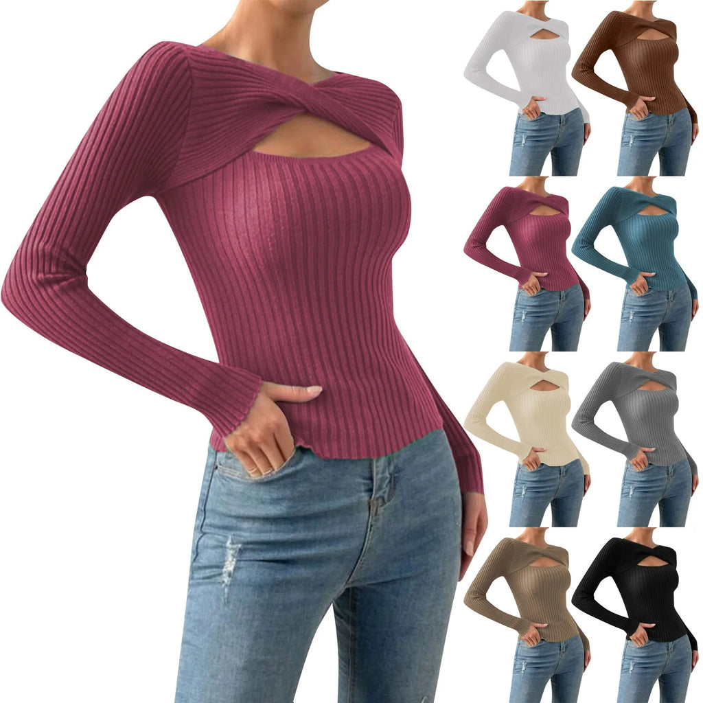 Jaime Peak-a-Boo Twist Ribbed Knit Sweater for Women