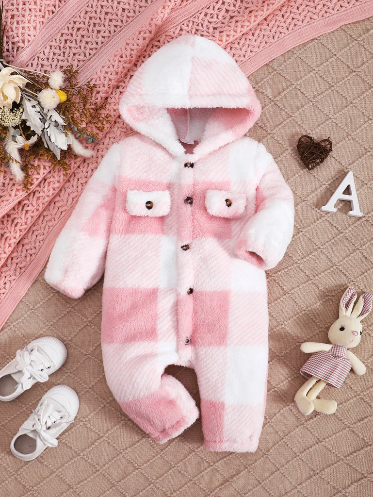 Iris Cozy Hooded Plaid Romper Jumpsuit for Baby Girl
