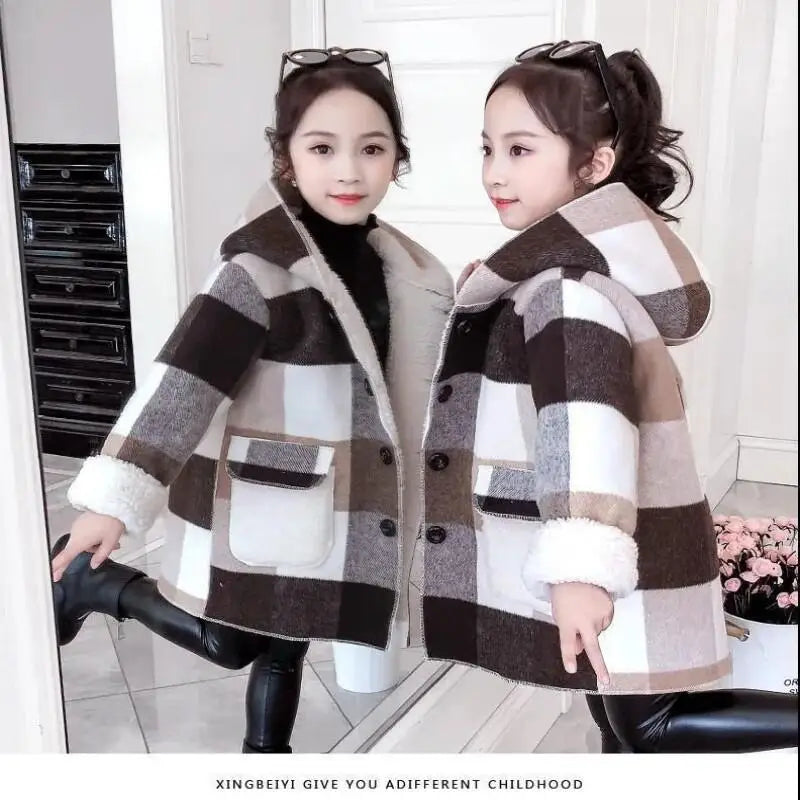 - Long sleeve jacket with plaid print and snuggly soft lining.