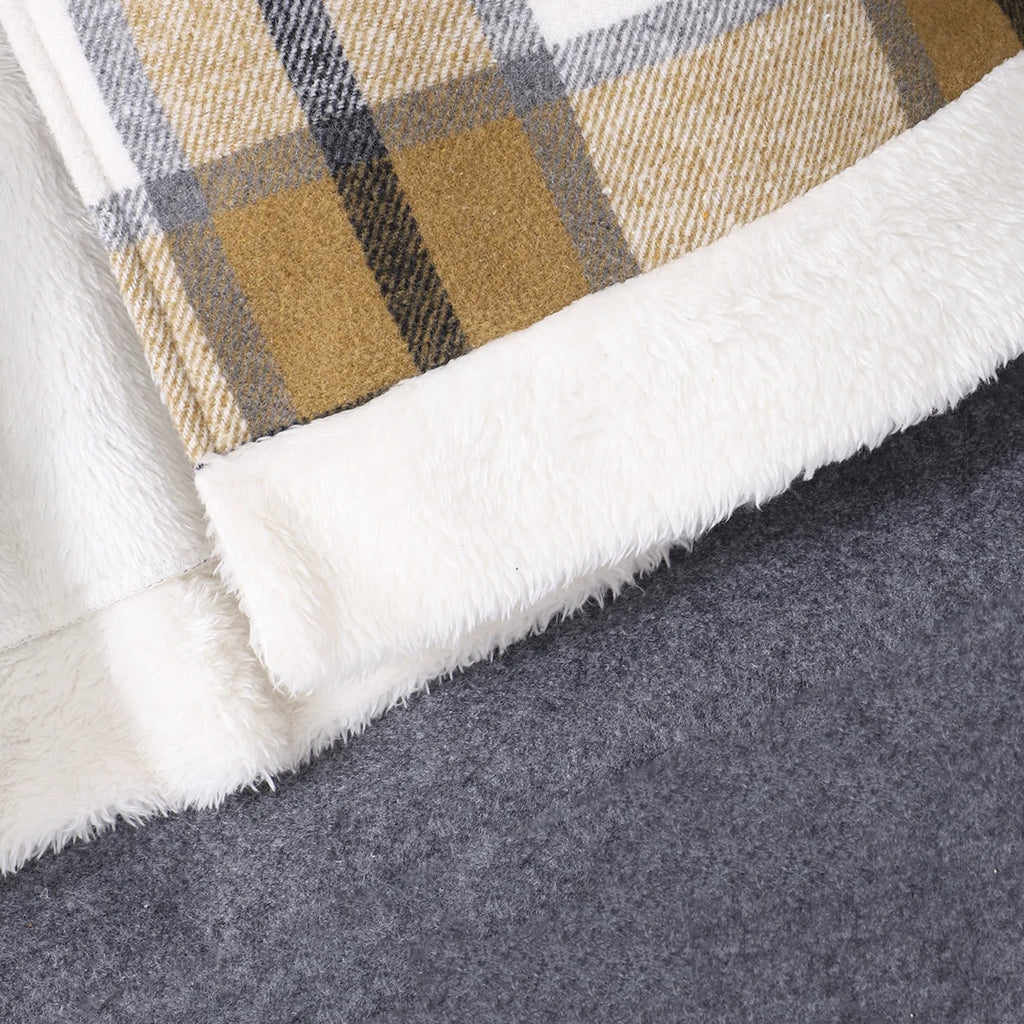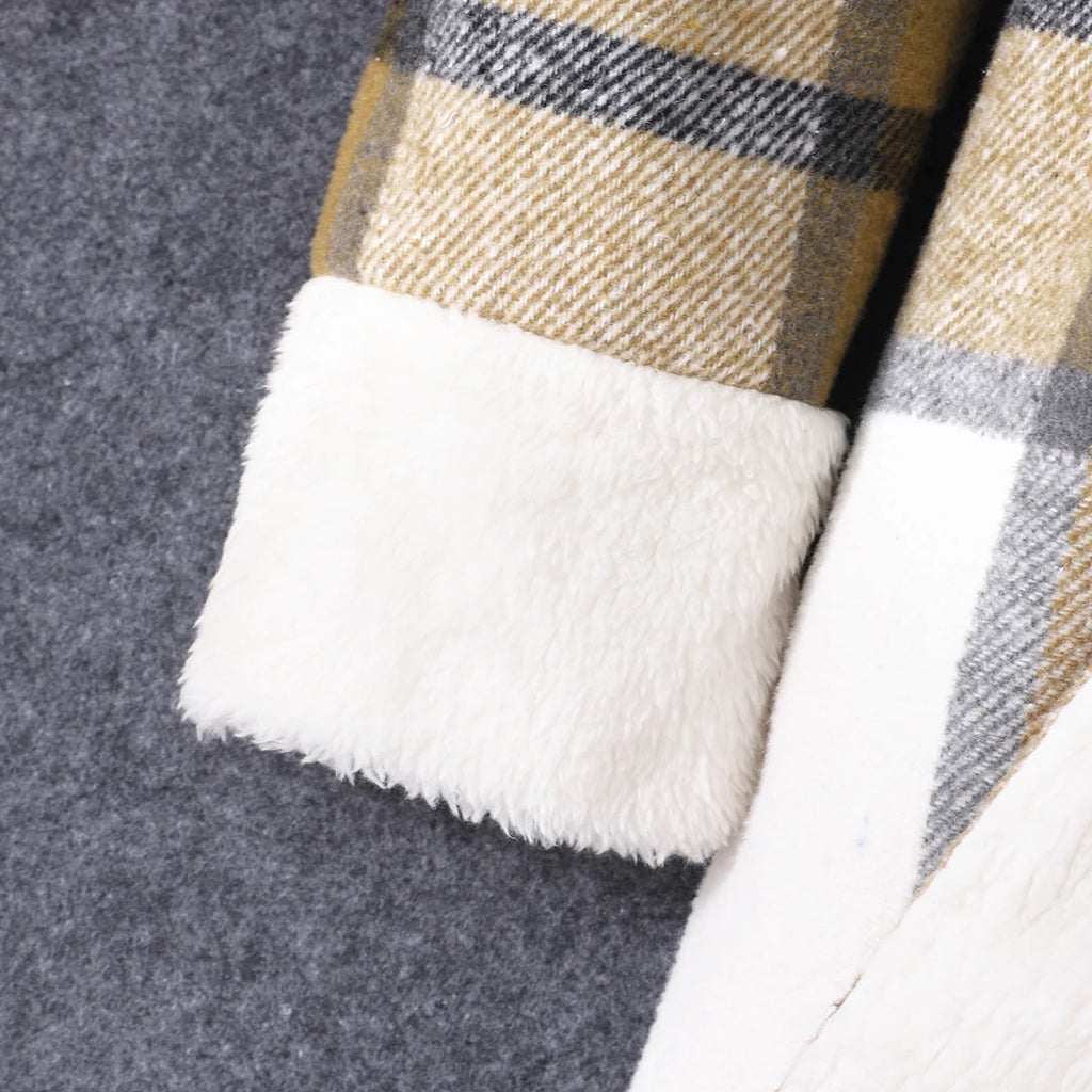- Long sleeve jacket with plaid print and snuggly soft lining.