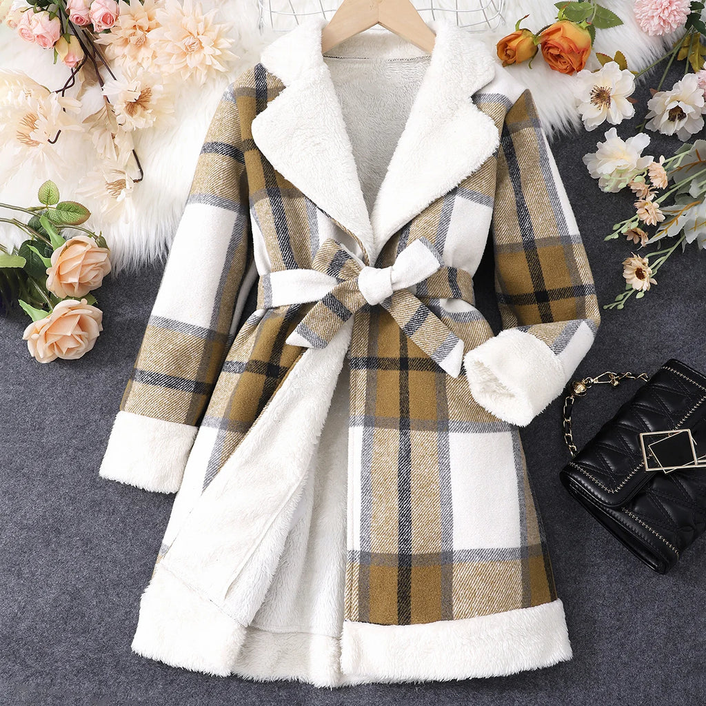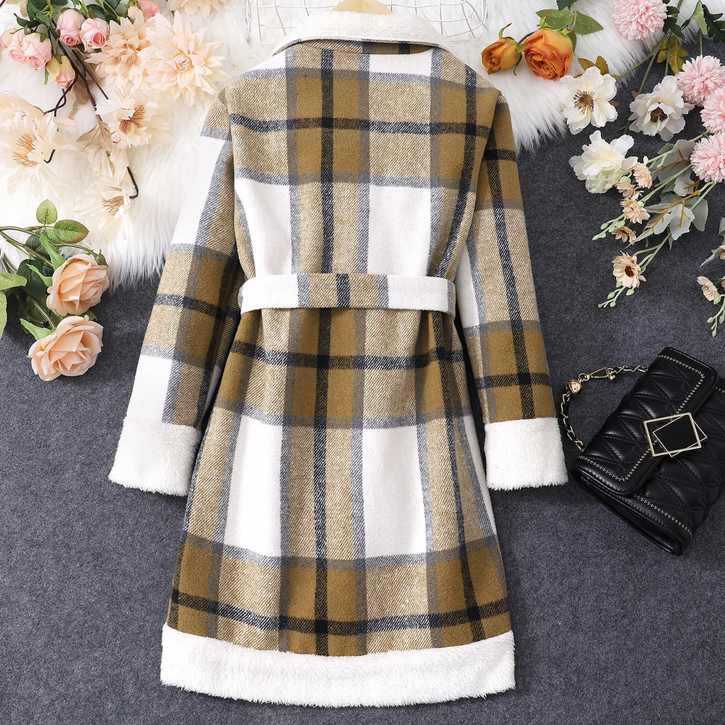 Girls' & Tweens' Longline Plaid Jacket with Tie Waist
