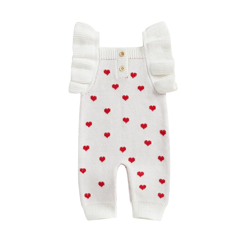 Tiny Hearts Flutter Sleeve Sweater Romper Jumpsuit for Baby Girls